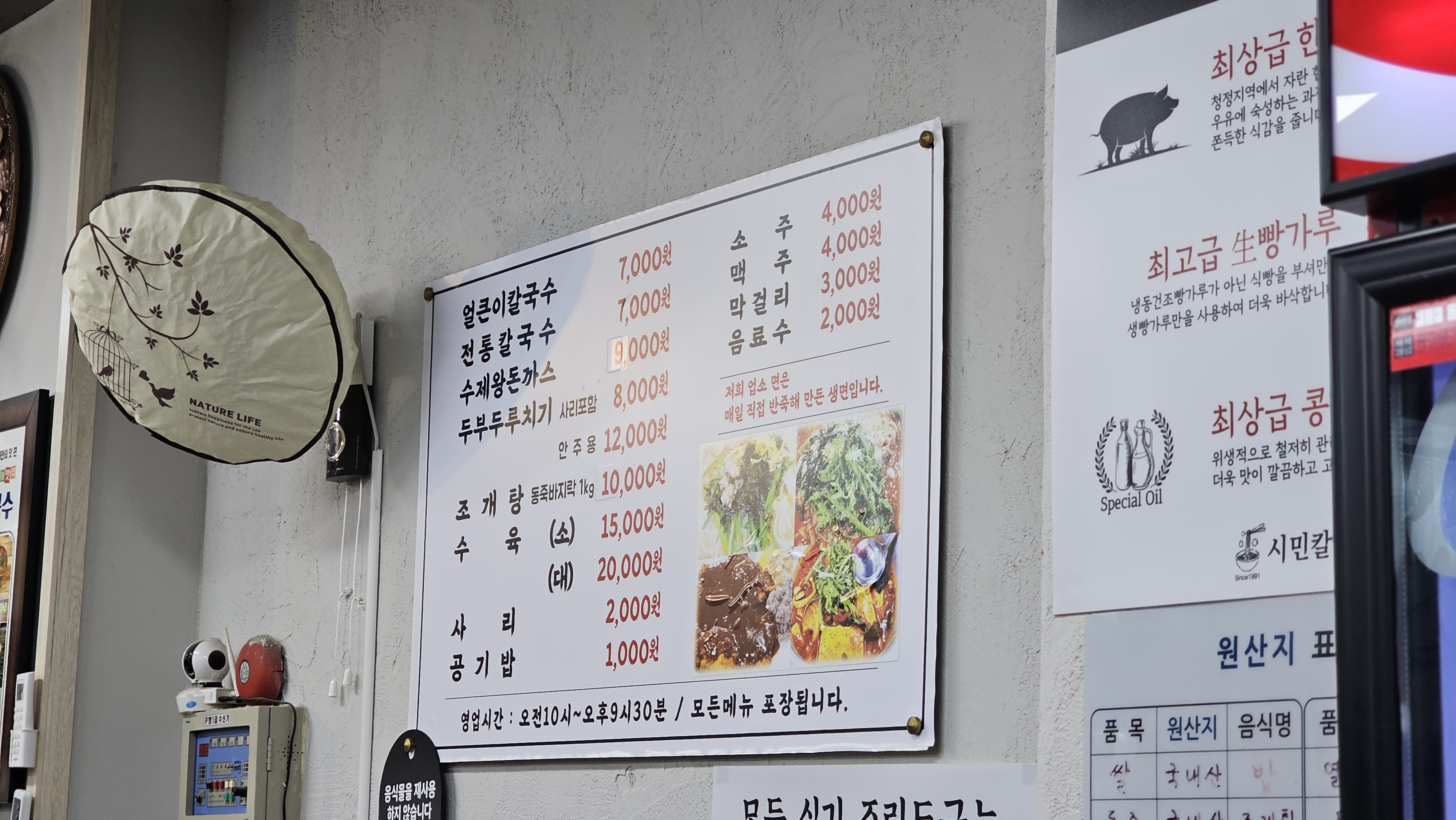 메뉴 참고하시면 되고, 주변에 칼국수랑 돈가스를 파는 다른 식당보다 가격은 더 비싼데 여기만 손님이 붐비네요.