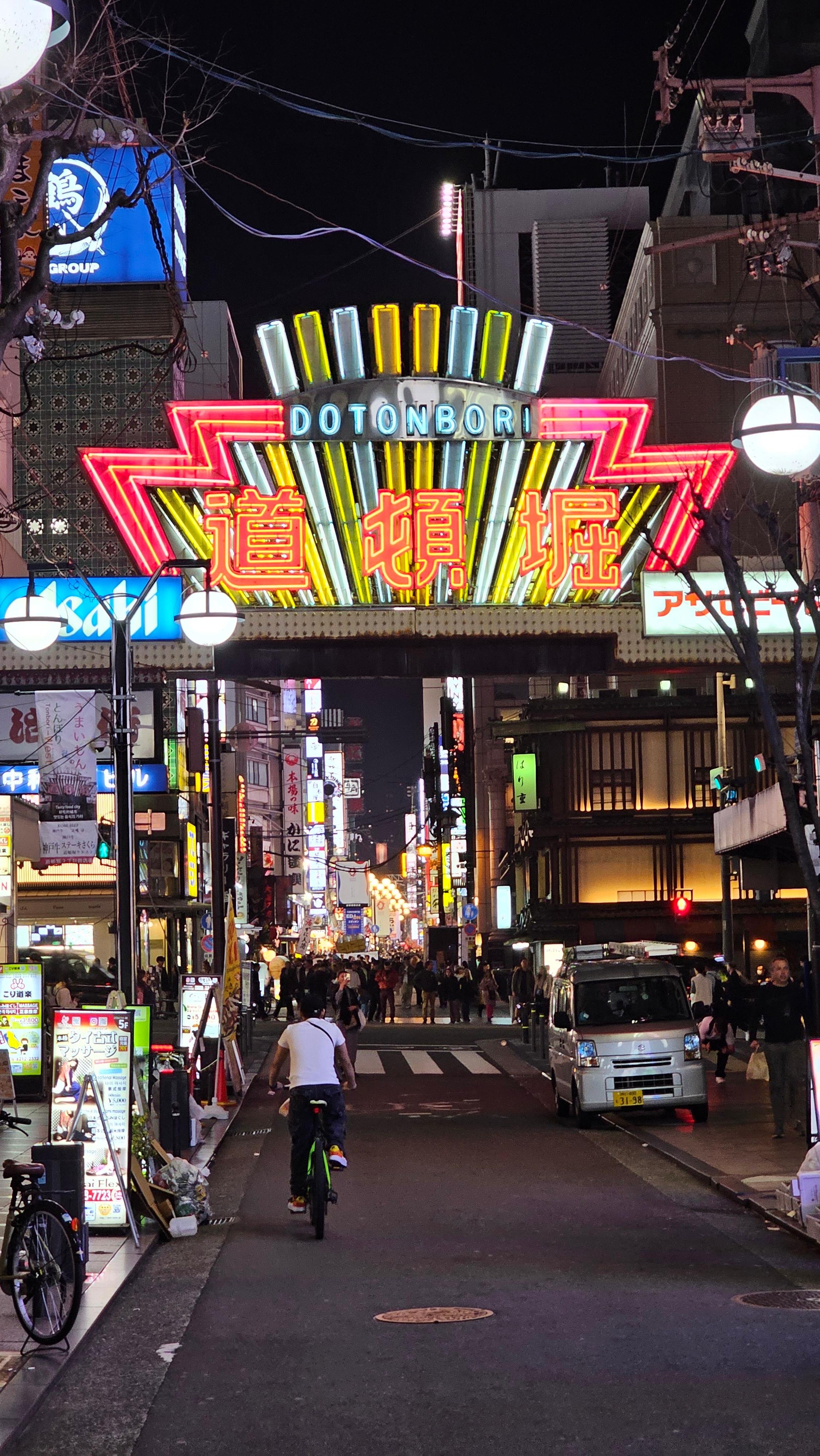 도톤보리에서 가장 유명한 랜드마크! 인증숏이 필수인 이곳은 특히 야간에 방문 시 화려한 네온사인들로 사진이 더욱 예쁘게 나옵니다. - 도톤보리 강 (道頓堀川)