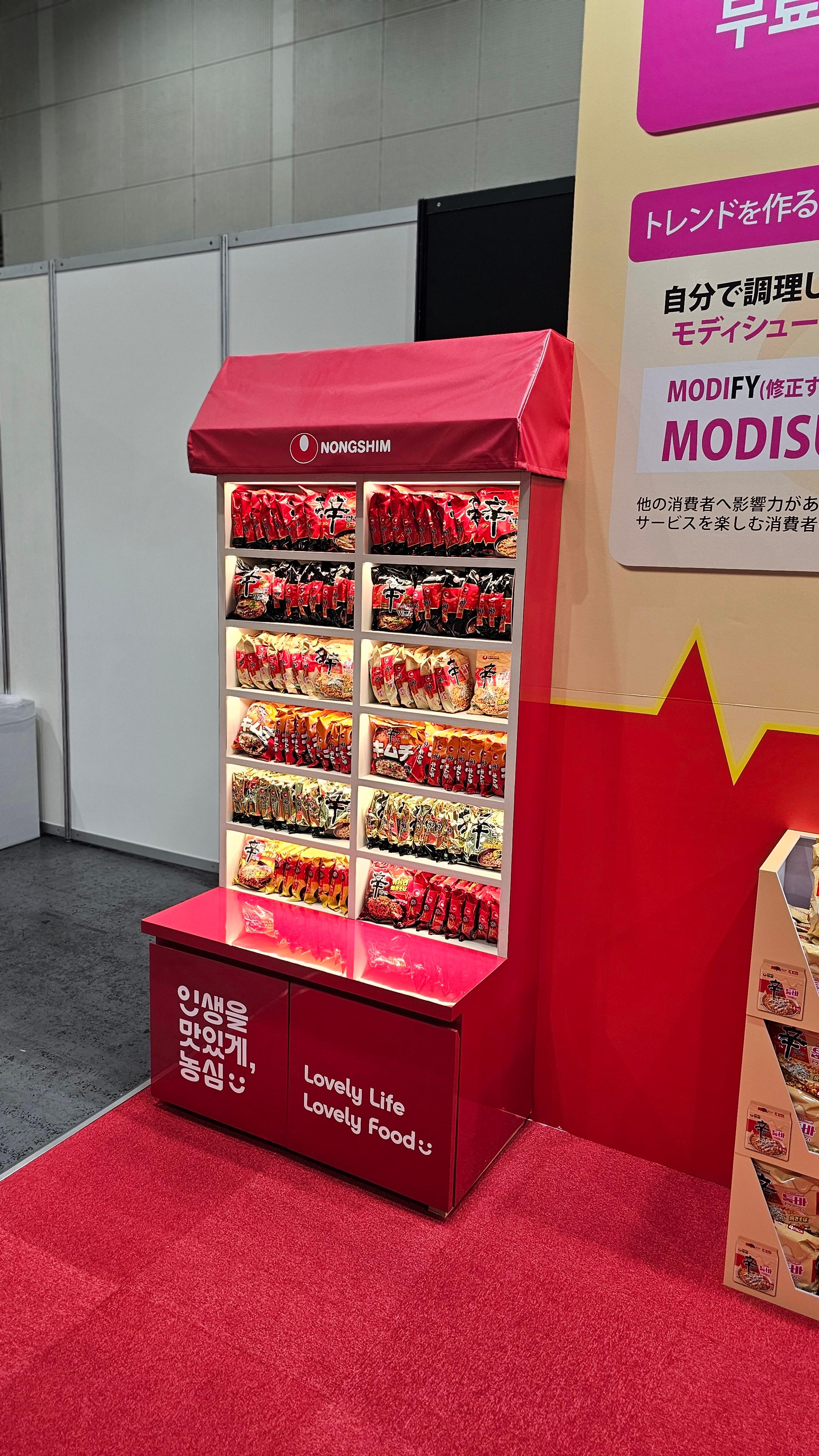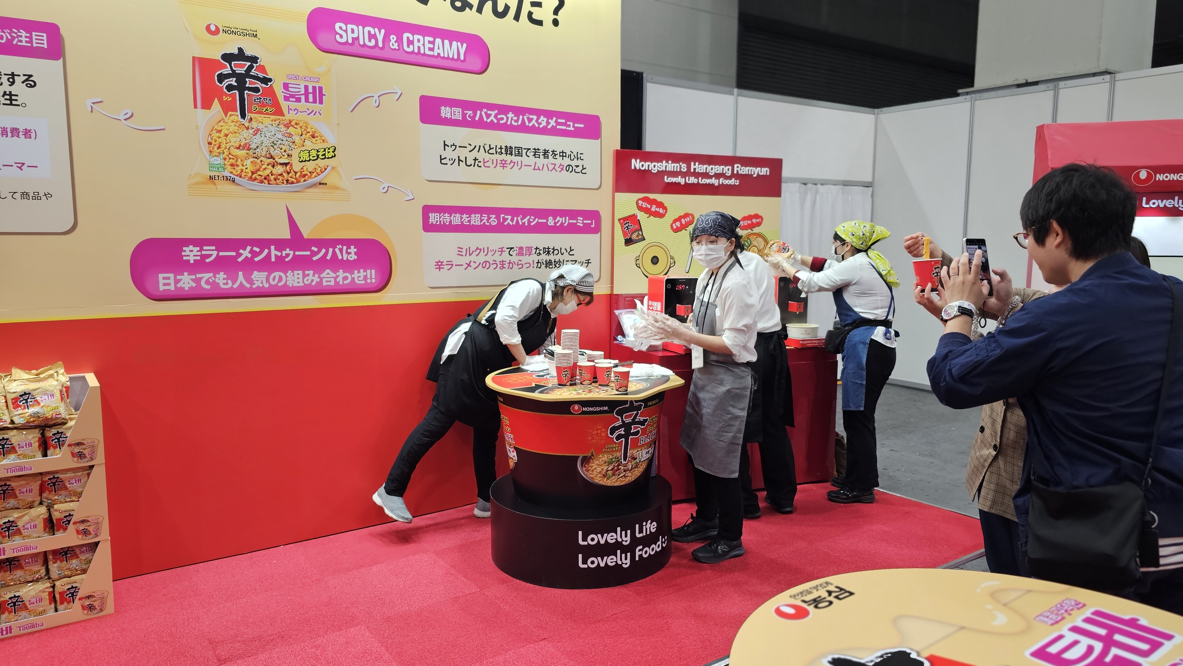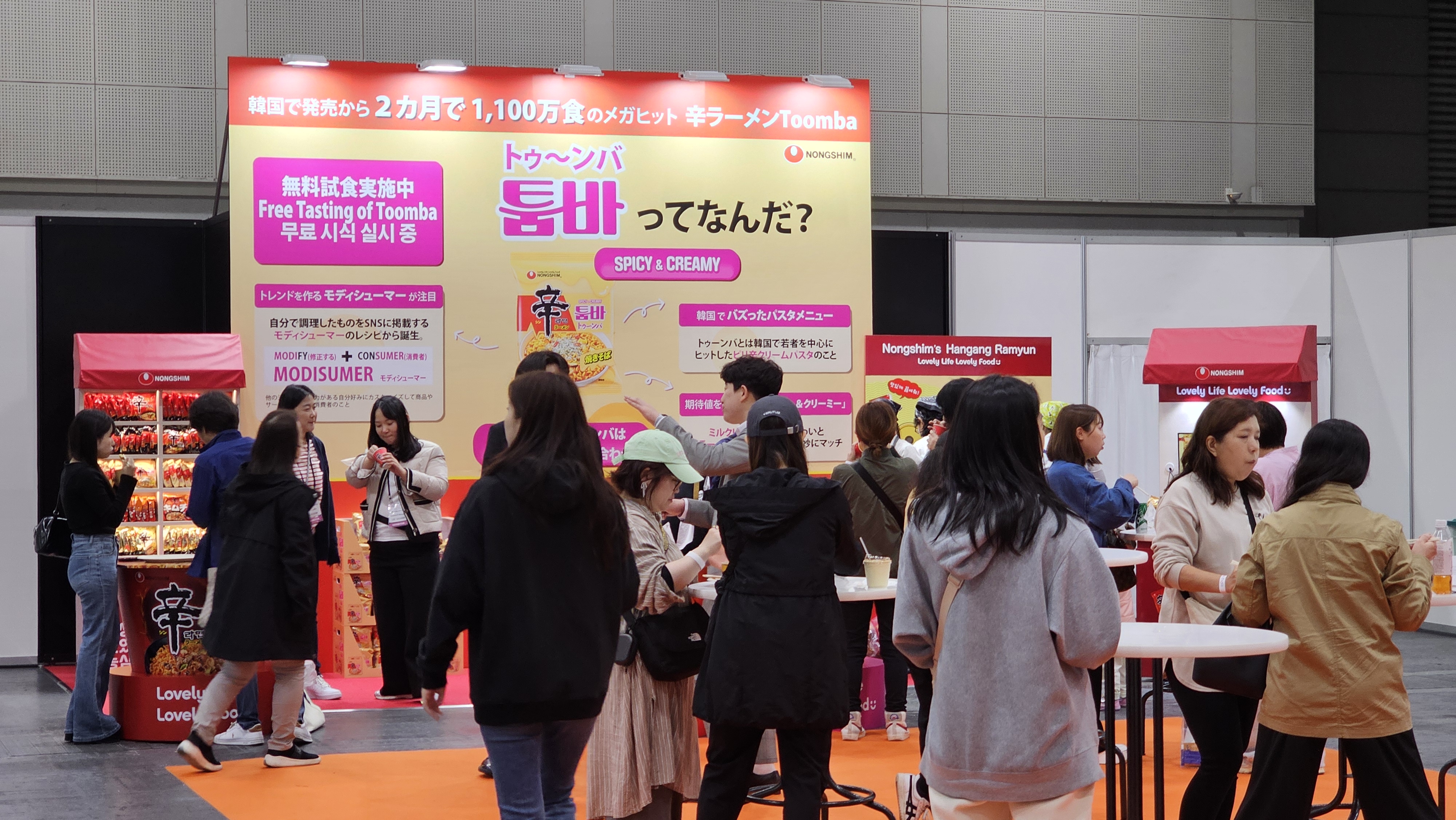 박람회장 한쪽 구석에 다양한 행사 부스가 준비되어 있었는데 여기는 그중 하나인 농심 신라면 툼바 시식행사를 진행하고 있었습니다.