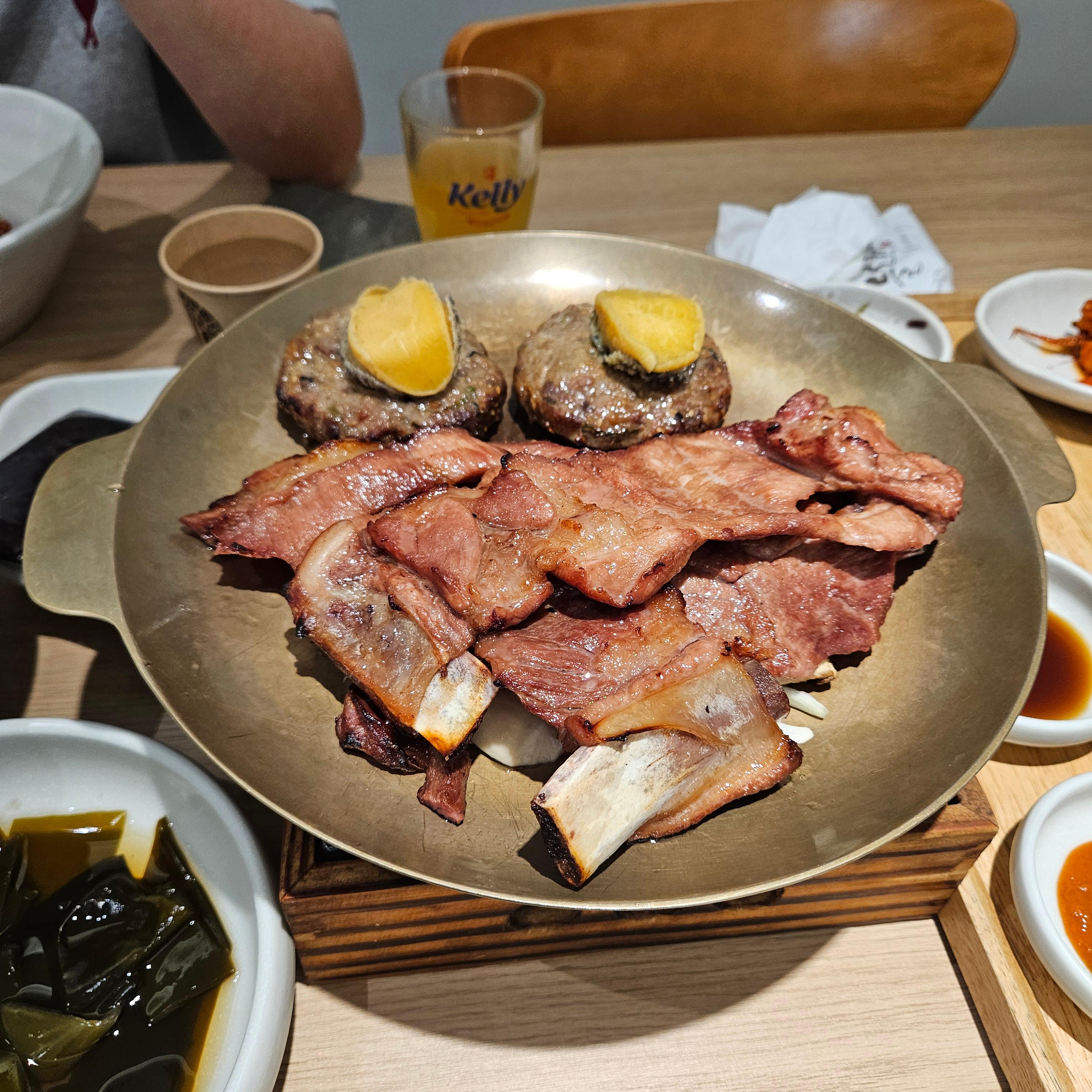 저희가 시킨 메뉴는 숯불 불고기 세트 + 전복 떡갈비였어요.