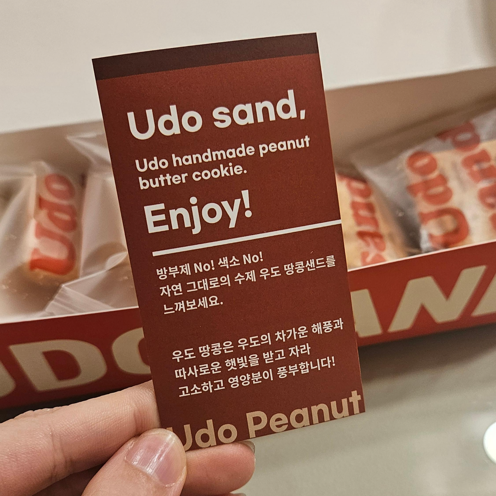우도에 가서 포장해 온 땅콩샌드. 땅콩 특유의 고소함과 바삭한 바깥 쿠기의 조합이 아주 좋았습니다. 우도에 들리신다면 하나쯤 맛보시는 것도 추천드려요.