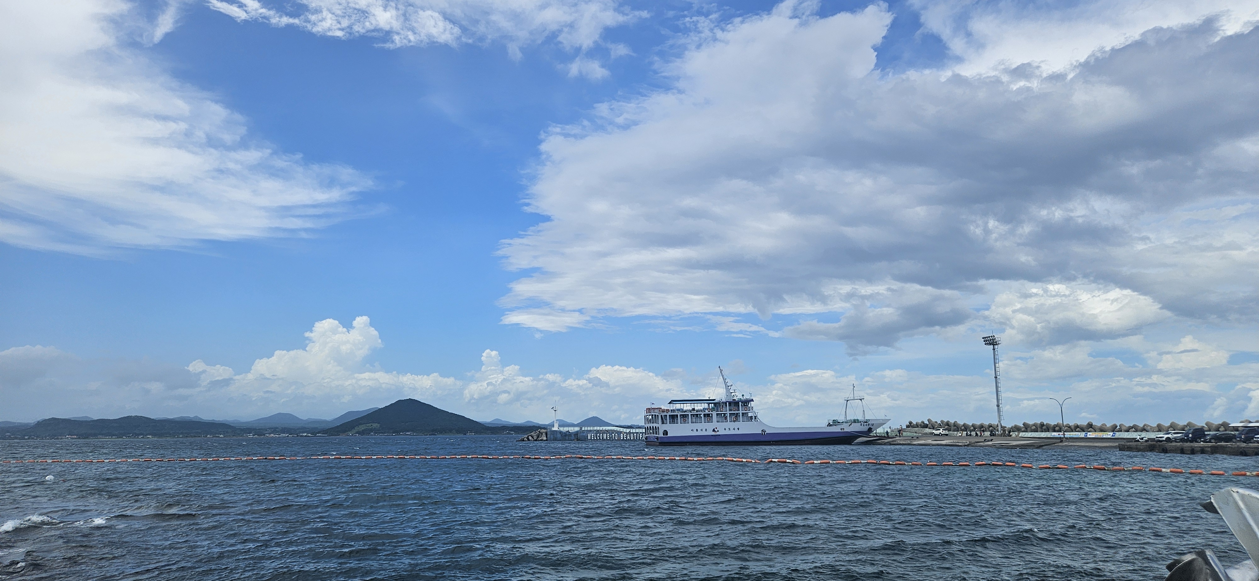 저희는 우도로 들어가기 위해서 성산(천진항)에 도착하여 배를 타고 이동했습니다. 배는 미리 예약하진 않았고 당일에 방문해서 표를 구매했어요. 참고로 배를 탈 때에는 보통 신분증을 확인하니 꼭 지참하여 방문해 주시고, 성수기에는 매진될 수 있으니 전날 예약을 추천드려요.