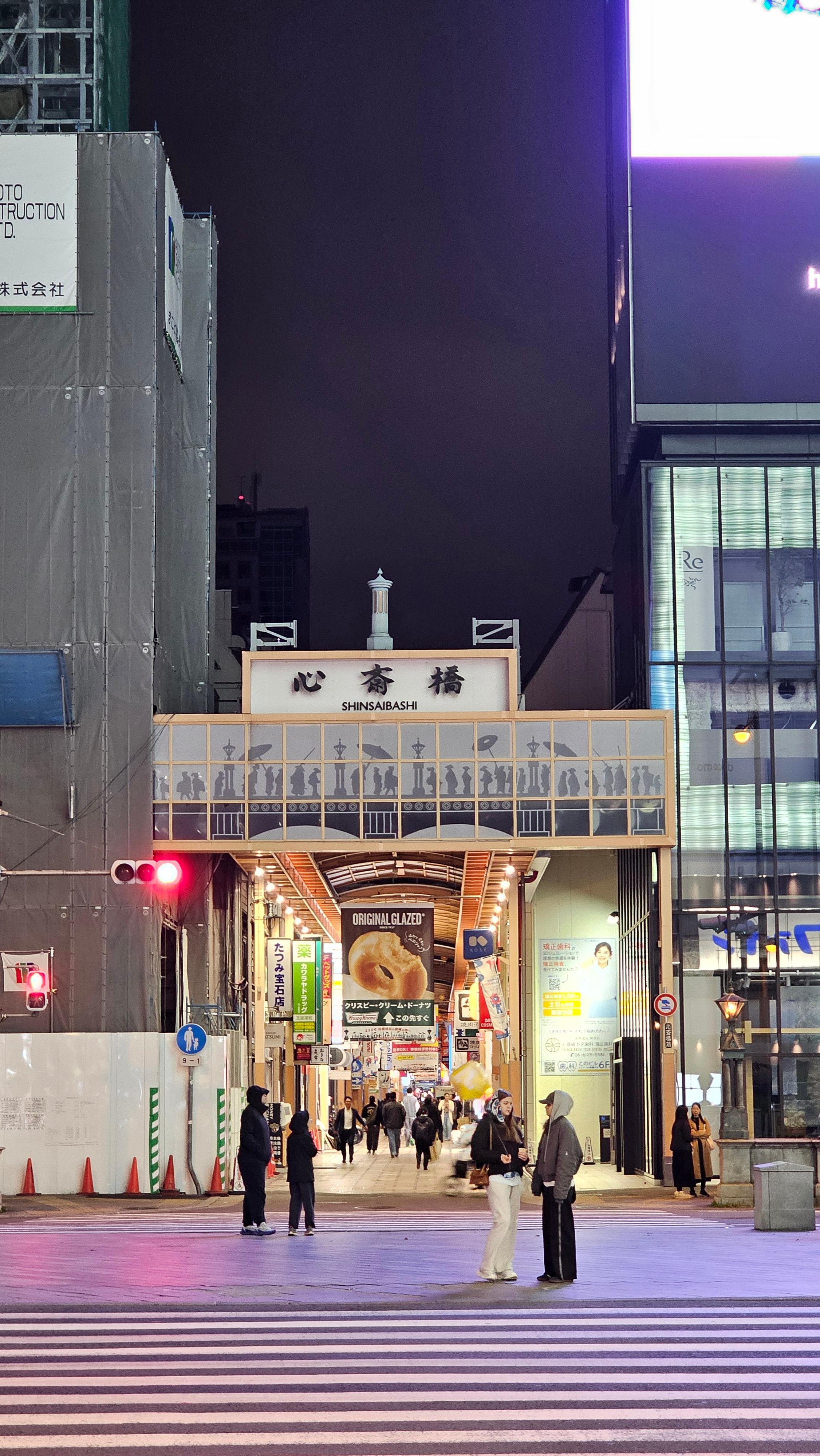골목을 지나 큰길로 나오면 이렇게 신사이바시 시장으로 통하는 횡단보도가 나옵니다.