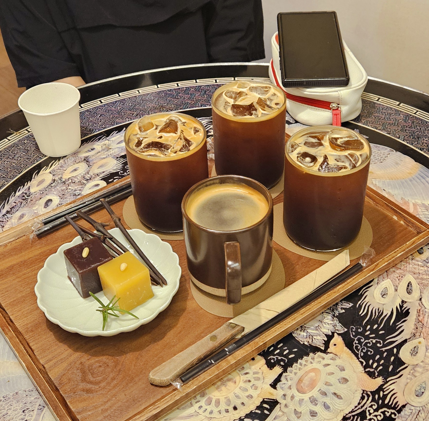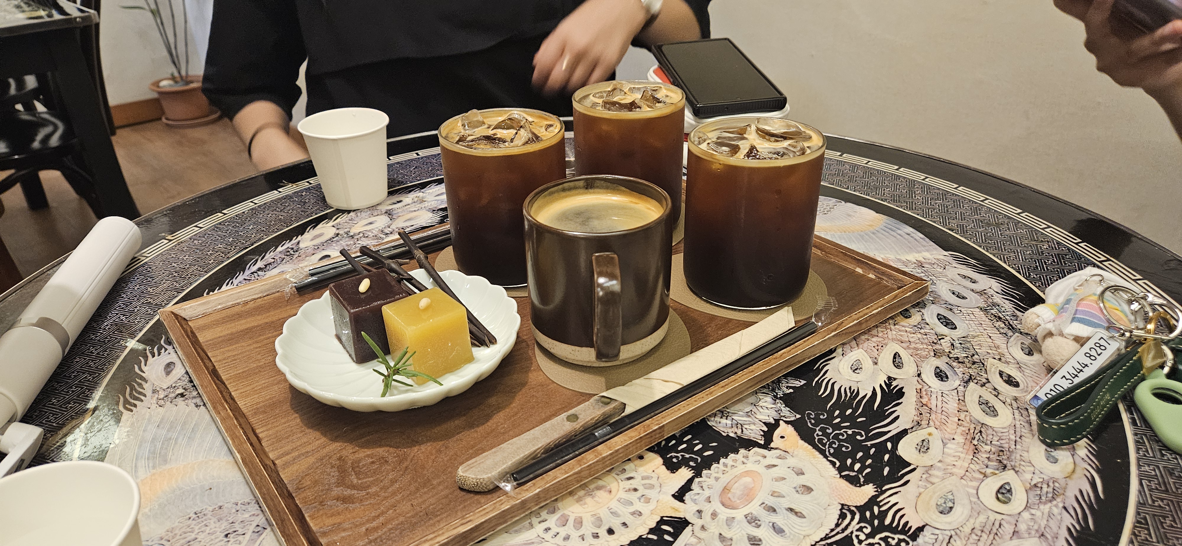 저희가 주문한 커피와 양갱.