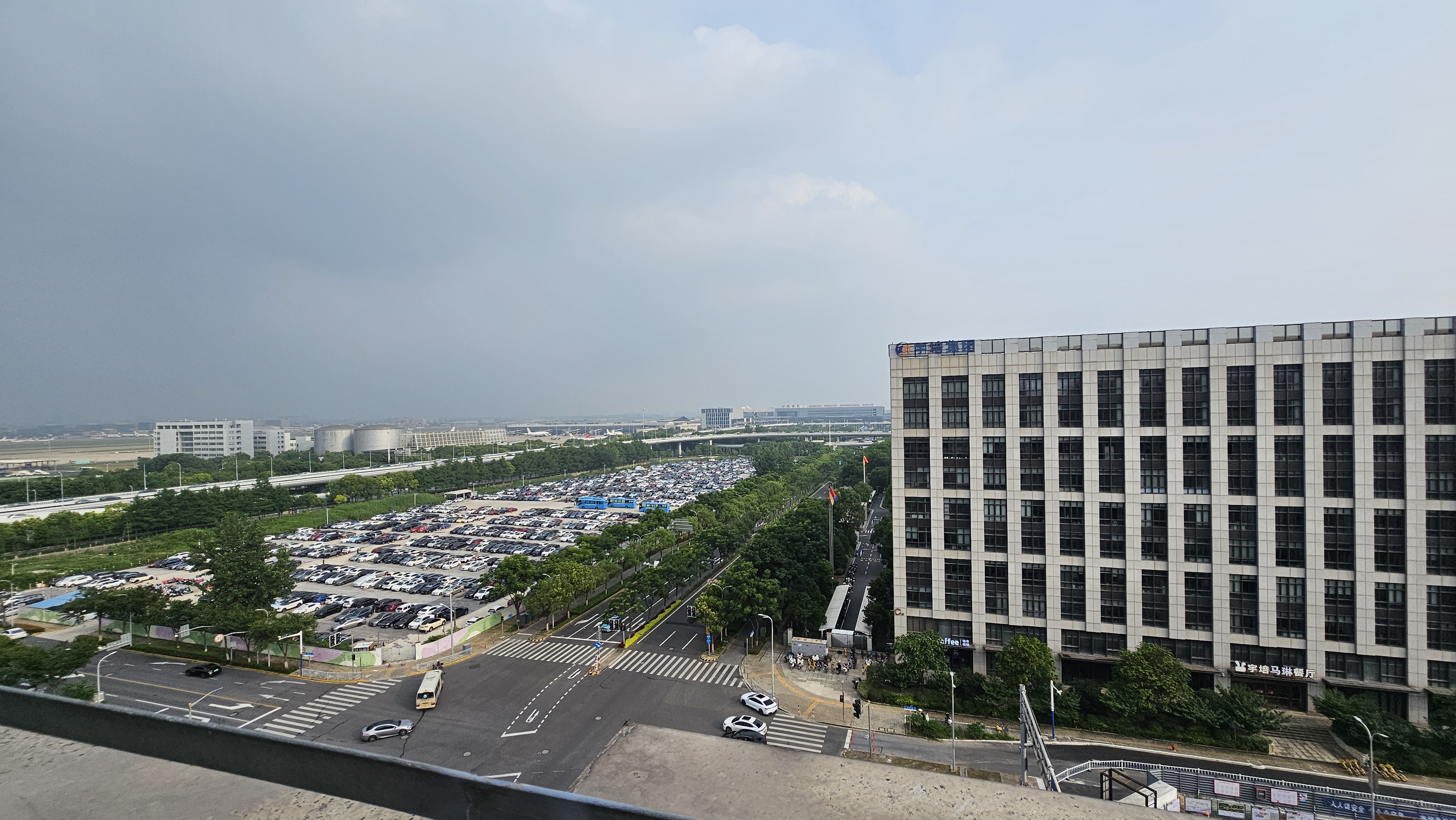상해에서 첫 번째 미팅한 업체 야외 테라스에서 경치가 좋아 몇 장 찍어봤는데 여기도 공항 바로 앞이라 숙소도 보이더라고요...ㅎㅎ