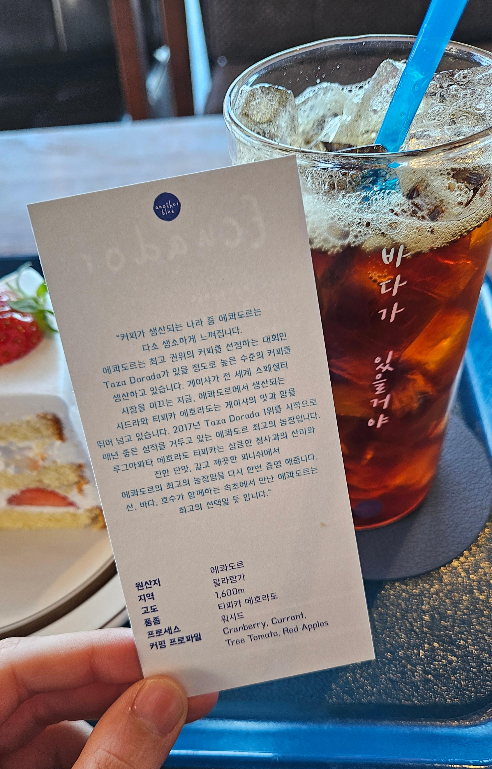 선택한 원두에 대해서는 이렇게 작은 쪽지로 설명이 되어있습니다