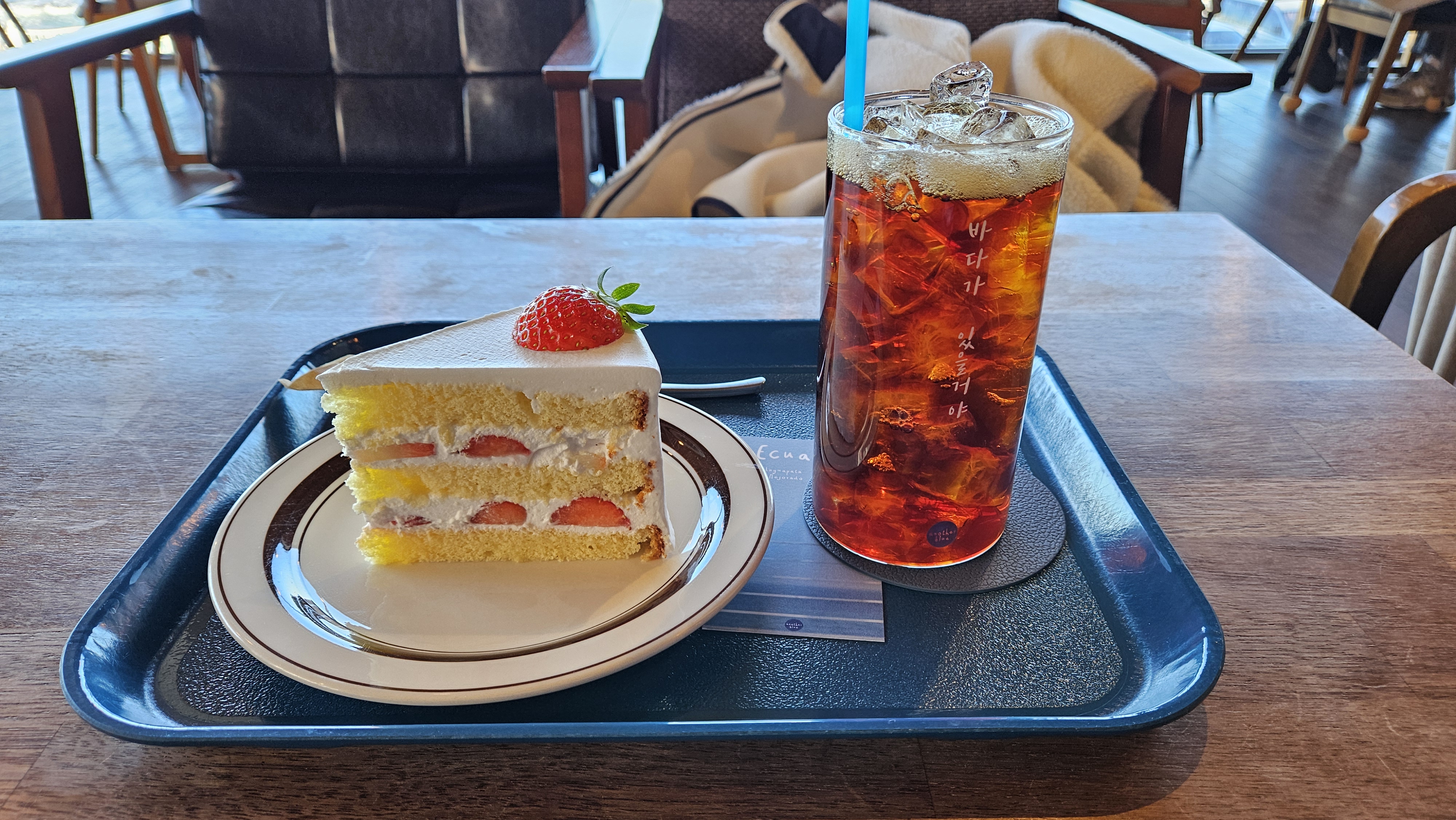 저는 아메리카노와 케이크를 시켜 자리를 잡았습니다.