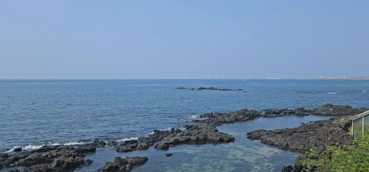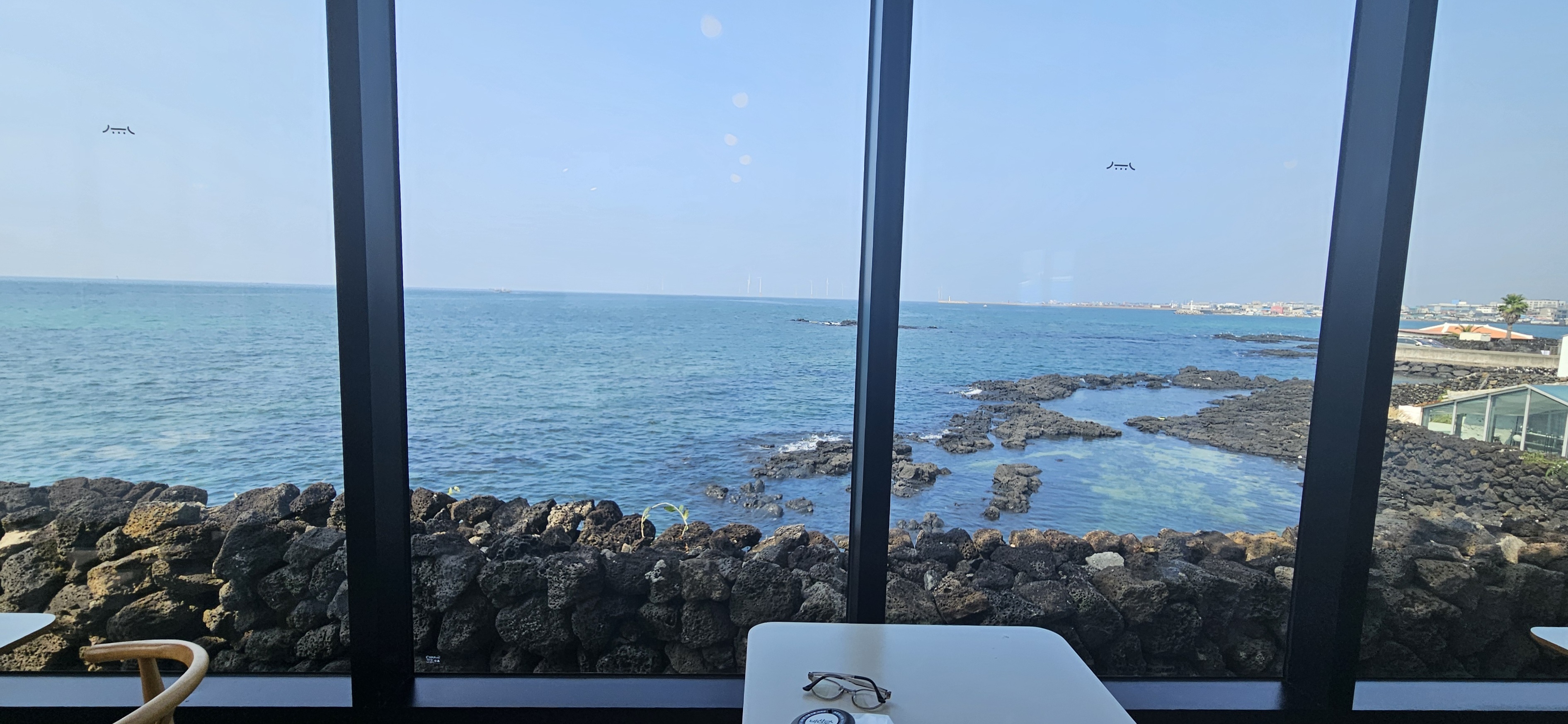 내부에서 보이는 바다뷰. 비선루는 협재 해변과 비양도가 눈과 마음을 편안하게 해주는 오션뷰가 장관이에요