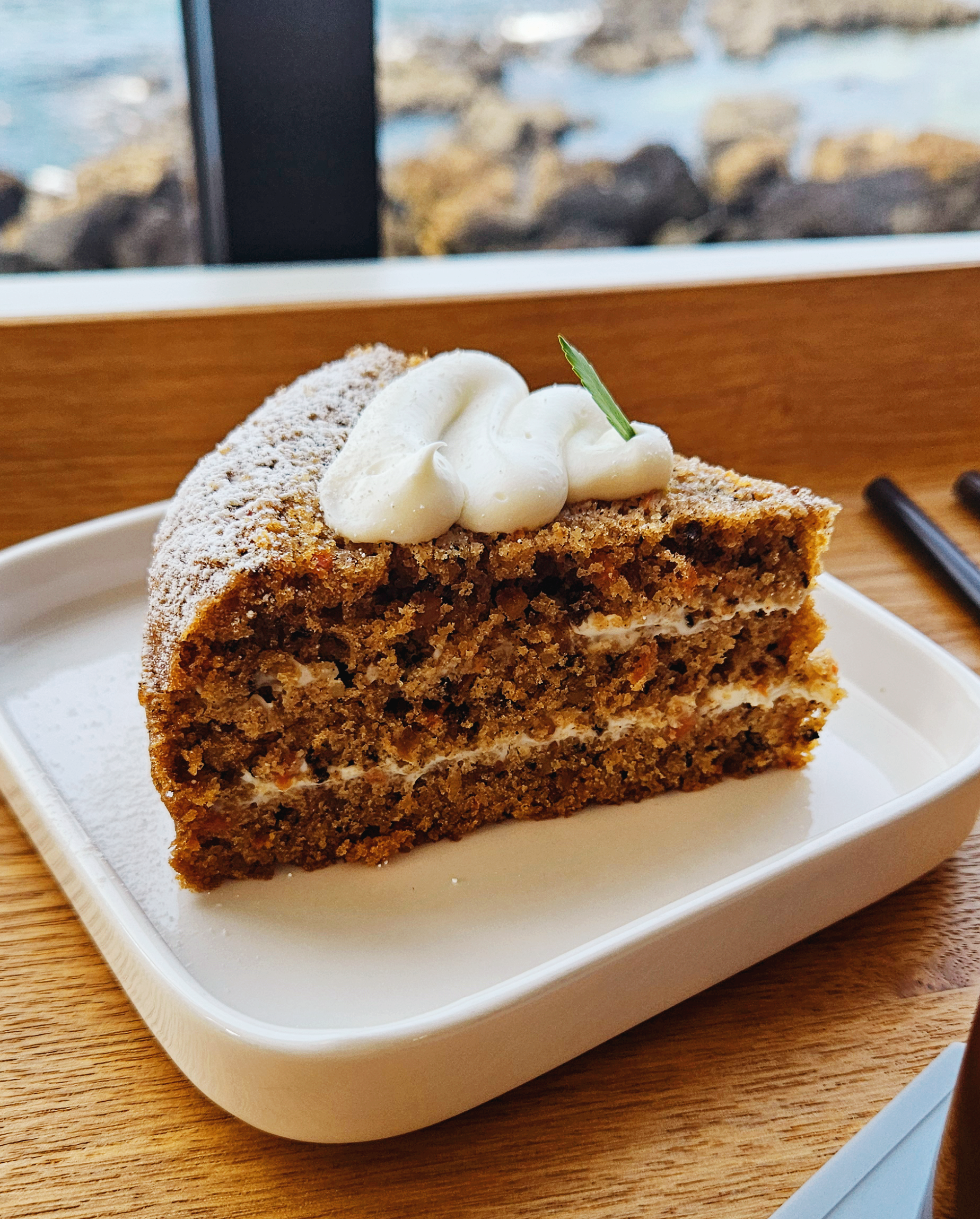 특유의 계피향이 강하지 않고 부드러운 시트에 견과류의 식감이 잘 어울리는 맛이었습니다. 커피와 함께 먹으니 정말 맛있더라고요. 평소 당근케이크를 좋아하지 않는 친구도 맛있다고 칭찬할 정도였어요. 수제라 수량이 많지는 않다고 하셔서 숙소로 돌아오는 길에 한 조각 더 테이크아웃을 해왔습니다.