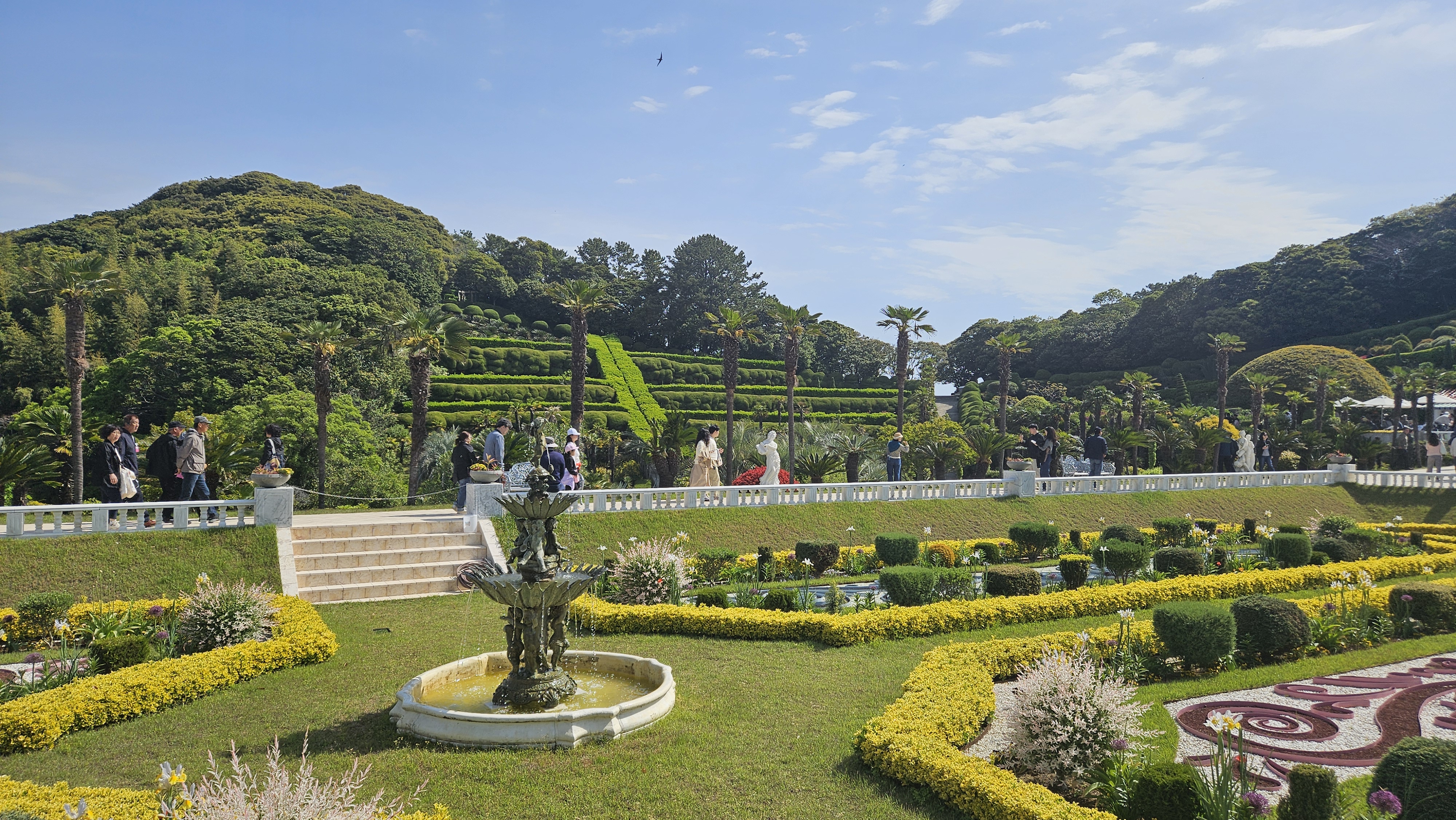 제가 갔을 때에는 봄~여름 사이여서 푸릇푸릇한 분위기가 인상적이었습니다. 꽃과 나무들이 울창한 섬이라서인지 관광하러 오신 어르신들이 많았어요. 섬 전체에 아열대 식물이 많기 때문에 이국적인 느낌이 드는데 포토 스폿에 배치된 조형물들도 이국적인 느낌이 한층 더 올려줬습니다.