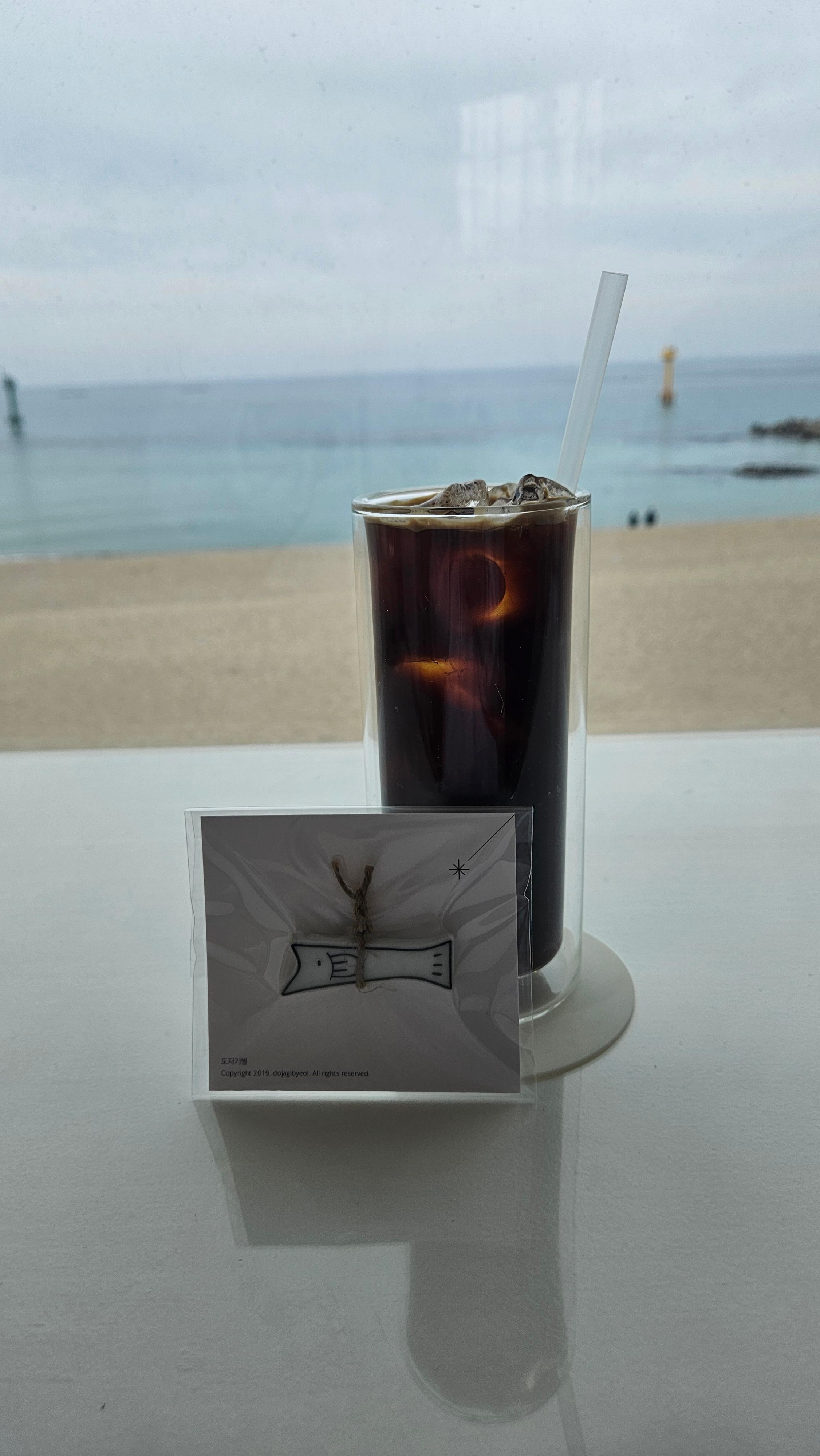 참고로 가게 내부도 넓지 않아서 자리가 그렇게 많지는 않았어요. 시내와는 약간 거리가 있어서 저희는 택시로 이동을 했는데, 조용하게 통창으로 보이는 바다가 운치 있었습니다. 조용히 노래 들으면서 커피도 마시고, 아기자기한 소품들도 구경하니 시간이 훅 가있더라고요.