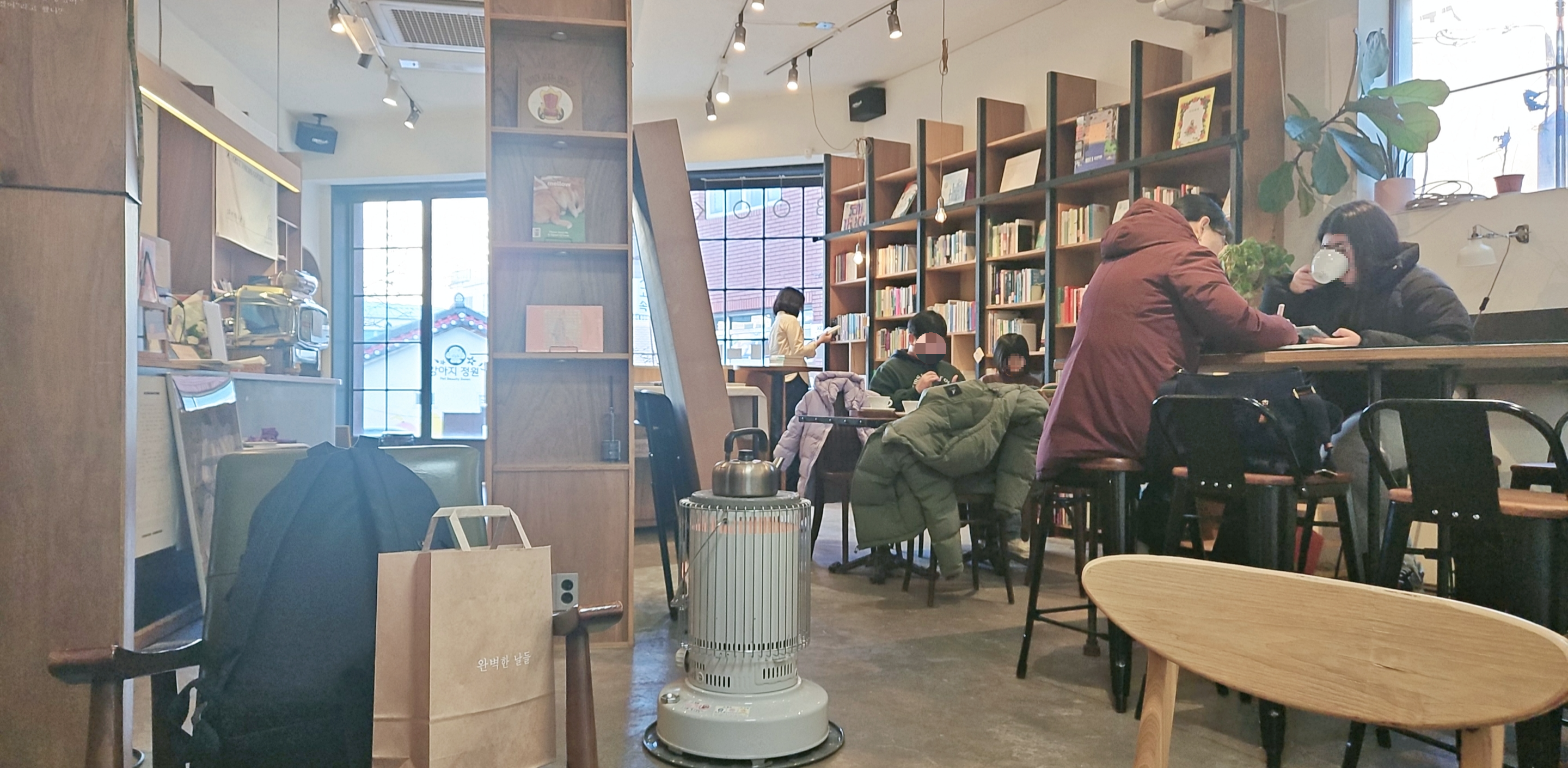 - 테이블 겸 좌석이 있어 향긋한 커피와 함께 독서 가능