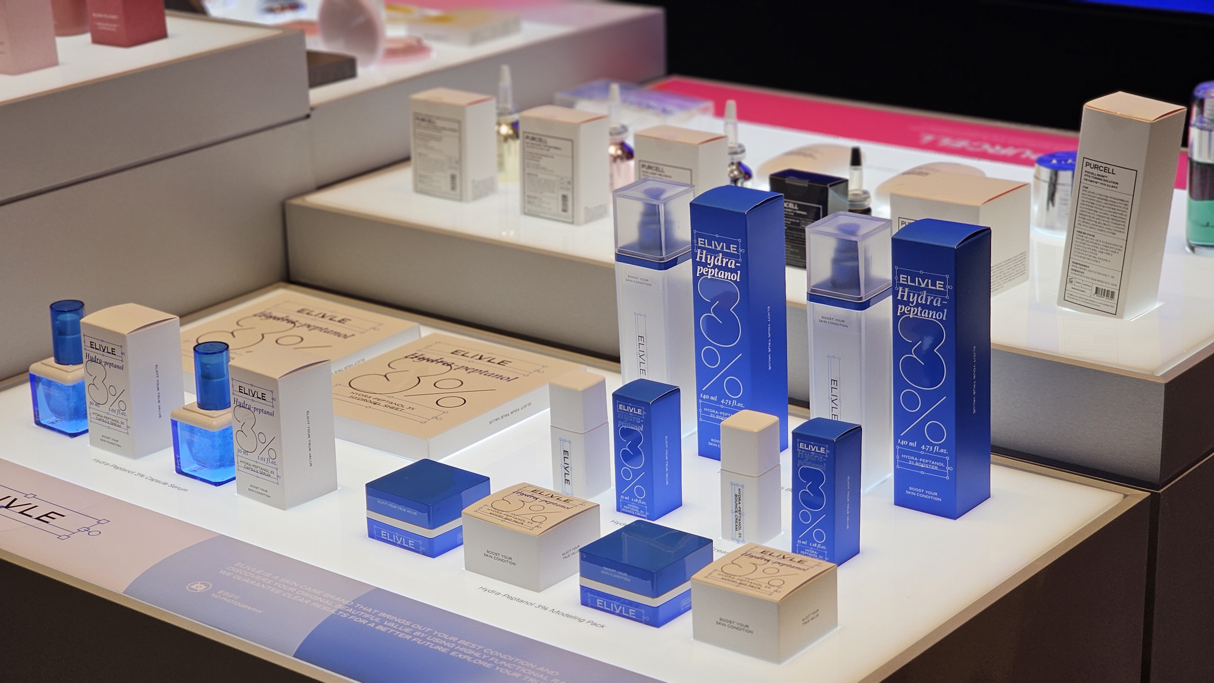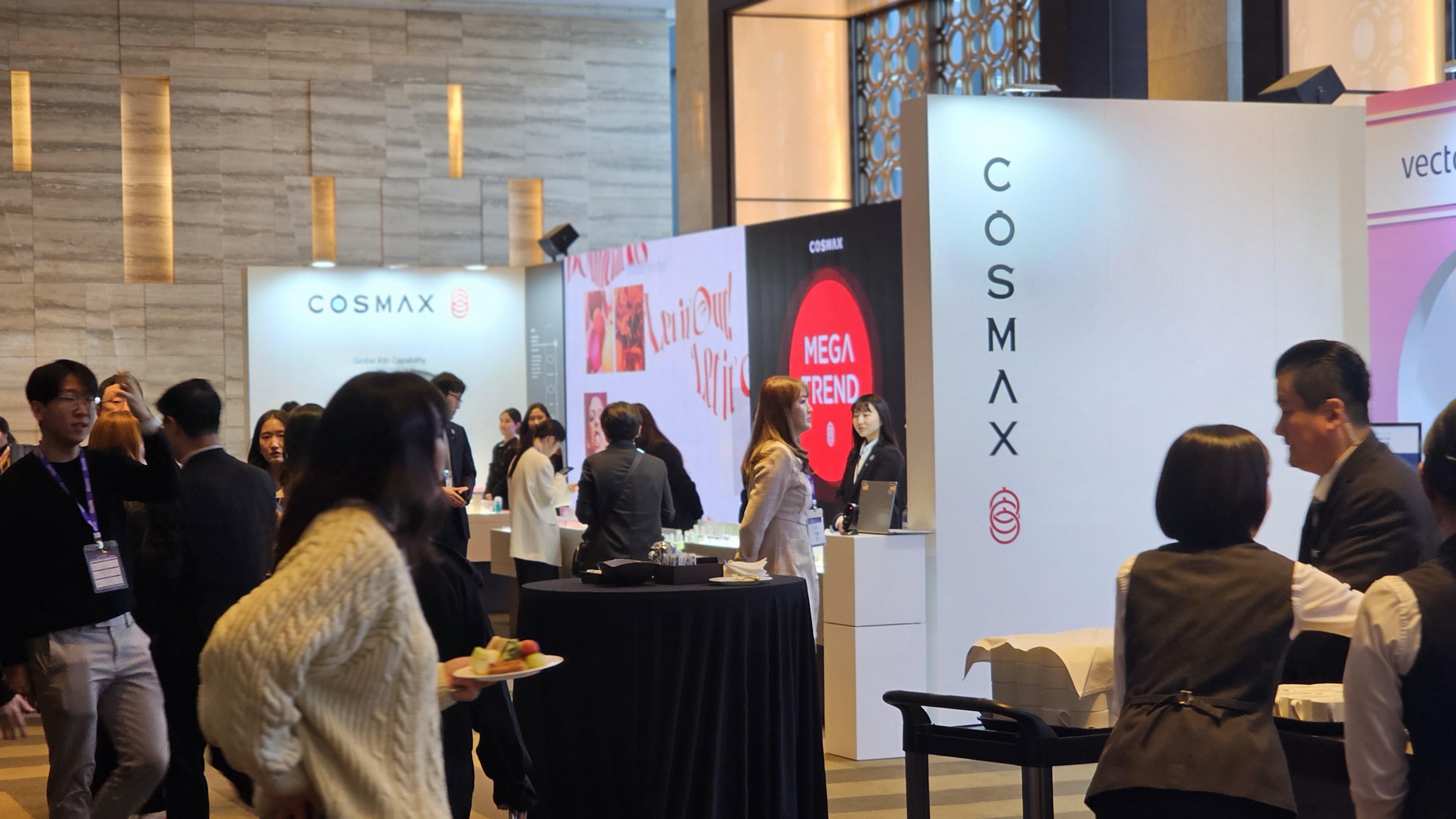 다양한 종류의 코스멕스 제품들이 로비에 전시되어 있었습니다.